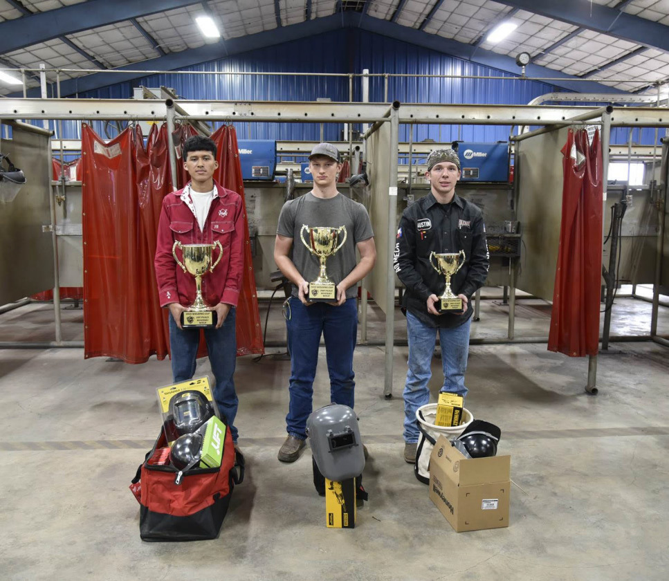 Mystery Pipe Weld Competition Winners From left; 1st Place – Isaias Perez – Bloomington High School, 2nd Place – John Brown – Palacios Junior Senior High School, and 3rd Place – Austin Sommerfeld – Edna High School -Submitted Photo