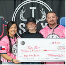 Youth Pro Staff Shooter Stockton DeRouen with owners Josie and Donny Harris being presented with a $250 signing bonus.