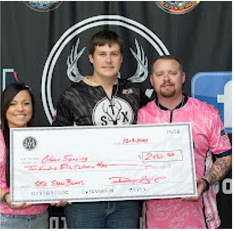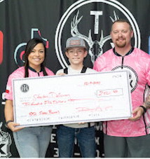 Youth Pro Staff Shooter Weldon Bowers with owners Josie and Donny Harris being presented with a $250 signing bonus.