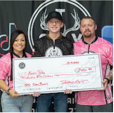 Youth Pro Staff Shooter Korbin Pate with owners Josie and Donny Harris being presented with a $250 signing bonus.