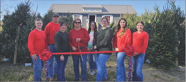 From left to right from M2 Christmas Tree Farm: Atlee Davis, Connor Stutesman, Heather Myers, Susan Myers, Meagan Myers, Scarlett Lange, & Mia Miori (missing Pat Myers). Back row: JCCCA Board of Directors; Brooke Belicek with Rockin B Farms.