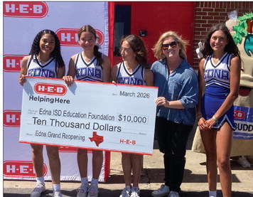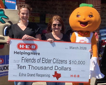 At the end of their ribbon-cutting ceremony last Friday, HEB donated $10,000 each to the non-profit groups, Friends of Elder Citizens and the Edna ISD Education Foundation, to thank them for being a large part of the community.